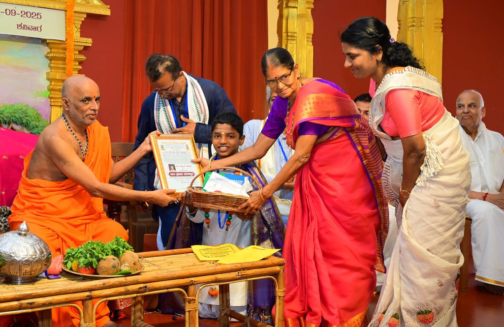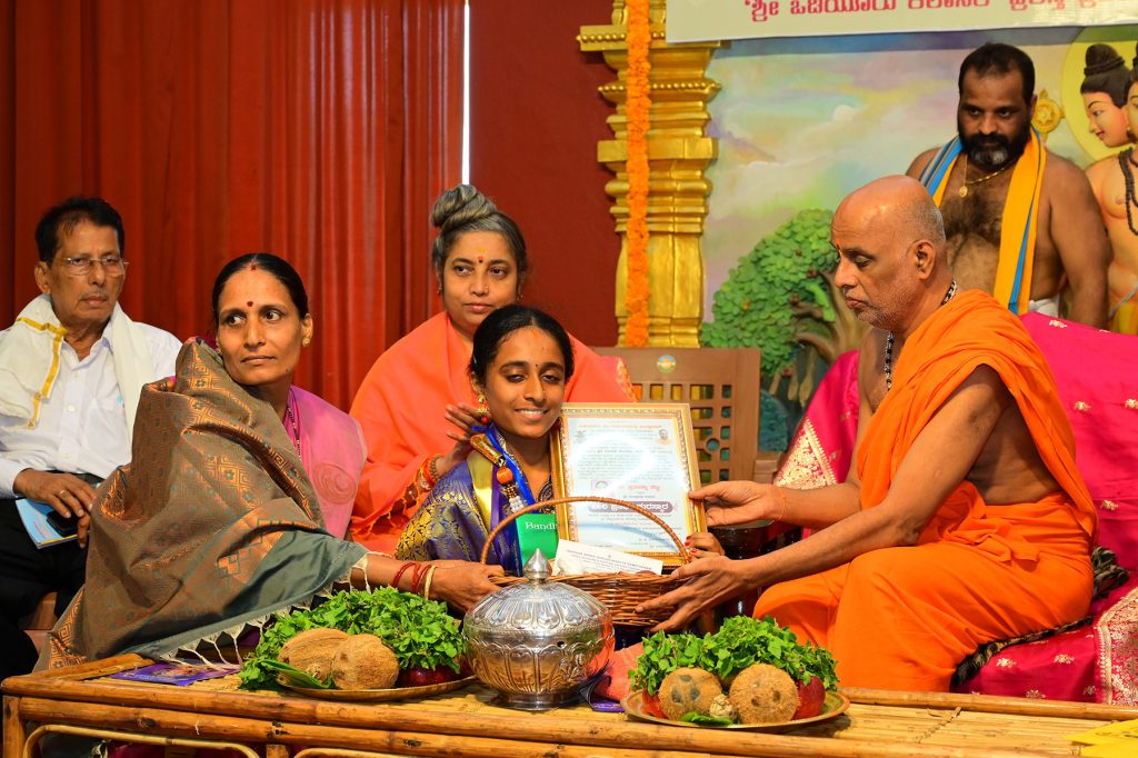 ಪ್ರತಿಭಾ ಪುರಸ್ಕಾರ: ಯುವ ಪ್ರತಿಭೆಗಳಾದ ಯಕ್ಷಗಾನ ಚೆಂಡೆ ವಾದಕ ಮಾ. ಅದ್ವೈತ್ ಕನ್ಯಾನ, ಭರತನಾಟ್ಯ ಕಲಾವಿದೆ ಕು. ಪ್ರತೀಕ್ಷಾ ಶೆಟ್ಟಿ ವಾಮದಪದವು ಇವರಿಗೆ ಪ್ರತಿಭಾ ಪುರಸ್ಕಾರ ಮಾಡಿ ಪೂಜ್ಯ ಶ್ರೀಗಳವರು ಆಶೀರ್ವದಿಸಿದರು.